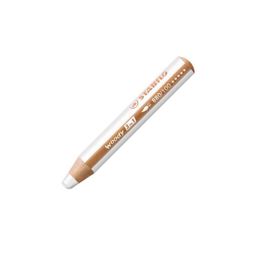 Il matitone STABILO woody 3 in 1 bianco è uno strumento creativo versatile che unisce in un unico prodotto tre funzioni: matita colorata, pastello a cera e acquarello. Grazie alla sua elevata opacità e all’intensità del pigmento, consente di realizzare tratti coprenti e luminosi anche su superfici scure come carta nera o cartoncini colorati. Il colore è acquarellabile e solubile in acqua, permettendo di ottenere facilmente effetti pittorici e sfumature con l’uso di un pennello. Può essere utilizzato non solo su carta e cartoncino, ma anche su superfici lisce come vetro, metallo, plastica e ceramica, dalle quali può essere rimosso con un semplice panno umido. La mina XXL da 10 mm garantisce un rilascio di colore molto intenso e una quantità di pigmento equivalente a quella di circa otto matite colorate tradizionali, risultando ideale per colorare grandi superfici e sperimentare diverse tecniche artistiche. Il fusto corto e spesso in legno certificato PEFC offre una presa stabile e confortevole, particolarmente adatta anche alle mani dei bambini, mentre la mina robusta e resistente alla rottura assicura durata e affidabilità nel tempo. Grazie alla sua combinazione di qualità, versatilità e resa cromatica, STABILO woody 3 in 1 è perfetto per attività creative, scolastiche e artistiche di ogni livello.