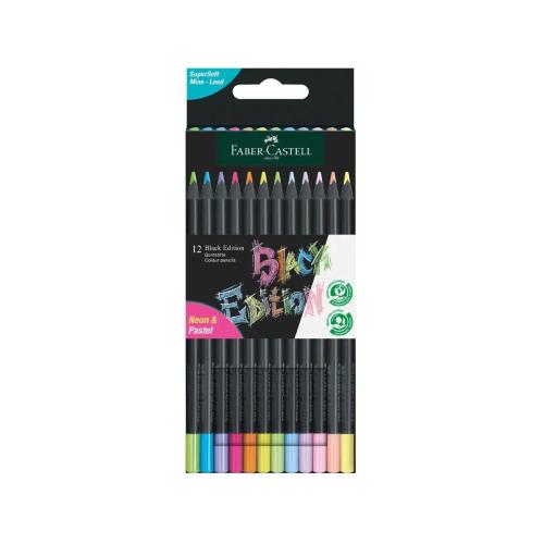 Pastelli triangolari Faber-Castell Black Edition Neon + Pastel – Astuccio 12 matite colorate fluo e pastello