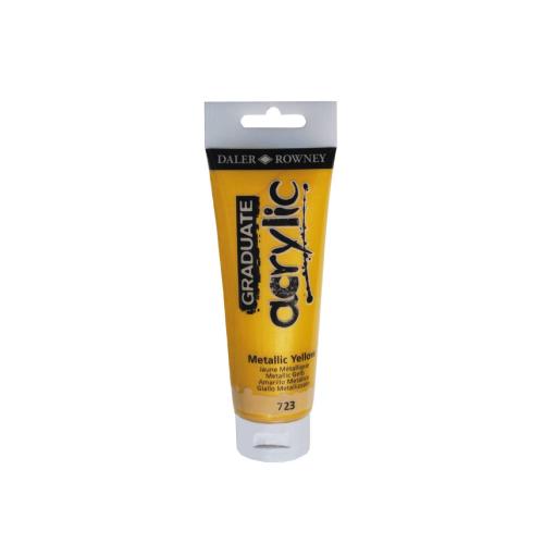 Il Maimeri Daler Rowney "Graduate Acrylic" tubetto 120 ml Giallo Metal è una pittura acrilica di qualità intermedia, ideale per studenti, principianti e artisti che desiderano effetti luminosi e metallici. La tonalità Giallo Metal è un giallo brillante con riflessi metallici, perfetta per dettagli decorativi, lavori creativi, effetti speciali e miscele cromatiche vibranti. Formulata con pigmenti selezionati e leganti acrilici di qualità, questa pittura garantisce buona coprenza, resistenza alla luce e asciugatura rapida. La consistenza cremosa consente stesure uniformi, velature delicate e applicazioni su diversi supporti come tela, carta, cartone o legno. Il tubetto da 120 ml offre una quantità generosa di colore, ideale per lavori di medio-grandi dimensioni o sessioni di lavoro prolungate. La linea Graduate Acrylic combina praticità, brillantezza dei colori e facilità di miscelazione, rendendola perfetta sia per apprendimento sia per progetti creativi più avanzati.