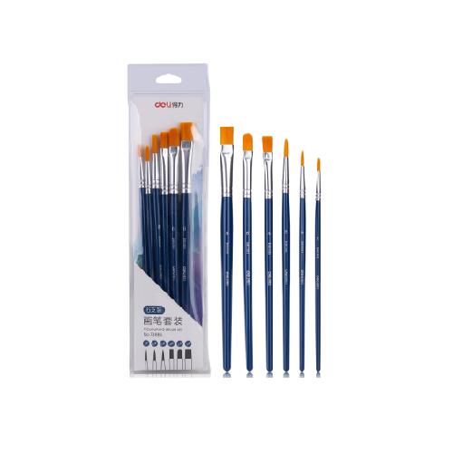 Set da 6 pennelli Deli di misure assortite, dotati di setola in nylon resistente e versatile, ideali per pittura, hobby creativi e attività artistiche. La setola di qualità consente una distribuzione uniforme del colore su diverse superfici, garantendo risultati precisi e professionali.