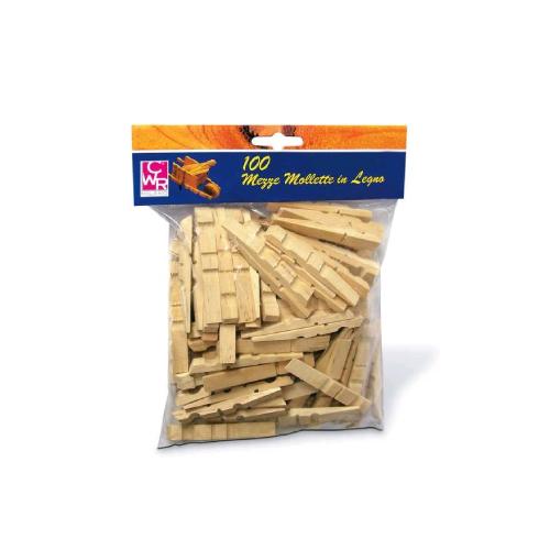 Busta da 100 mezze mollette in legno da 72 mm, ideali per fissare fotografie, appunti, biglietti e piccoli oggetti in modo pratico e decorativo. Realizzate in legno resistente, garantiscono un’ottima presa e possono essere utilizzate anche per decorazioni creative, bricolage e lavoretti fai da te.