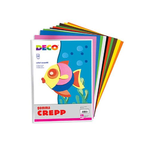 Confezione da 10 fogli di gomma crepp formato 50x66 cm in colori assortiti, ideale per lavori creativi, decorazioni, lavoretti scolastici e progetti di fai da te. Il materiale flessibile e leggero č facile da tagliare, modellare e incollare, permettendo di realizzare forme e decorazioni originali.