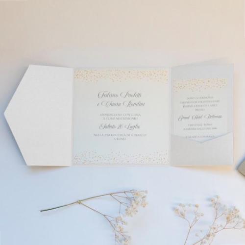 La cover quadrata con tasca Kartos nel formato 15,5×15,5 cm è realizzata in cartoncino da 300 g nel raffinato colore bianco perlato, ideale per partecipazioni, inviti e coordinati grafici per eventi eleganti e cerimonie formali. La tasca interna consente di inserire facilmente cartoncini, messaggi o fogli stampati, garantendo una presentazione ordinata e curata. La superficie perlata aggiunge luminosità e pregio visivo, conferendo un effetto sofisticato e raffinato perfetto per matrimoni, battesimi, comunioni e altre occasioni speciali. Grazie alla grammatura elevata, la cover offre stabilità e resistenza, proteggendo il contenuto e mantenendo la forma impeccabile nel tempo. Il cartoncino è compatibile con stampa inkjet e laser e può essere arricchito con nastri, sigilli in ceralacca o decorazioni creative per creare coordinati unici e personalizzati. La confezione da 10 pezzi rappresenta una soluzione pratica e versatile per tipografie, wedding planner e creativi che desiderano realizzazioni eleganti, curate e di grande impatto visivo.