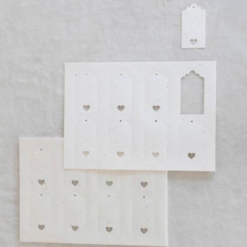 Tag Rettangolare con Cuore e Foro Kartos 4,5×8,5 cm – Prefustellato A4, Cartoncino 300 g, Carta con Semi Piantabile, Conf. 48 pz