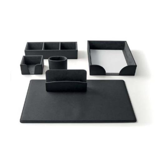 Servizio da scrivania box 6 pz con sottomano e set accessori nero | Organizer ufficio elegante e completo