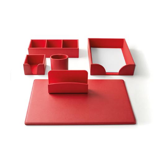 Servizio da scrivania box 6 pz con sottomano e set accessori rosso | Organizer ufficio elegante e completo