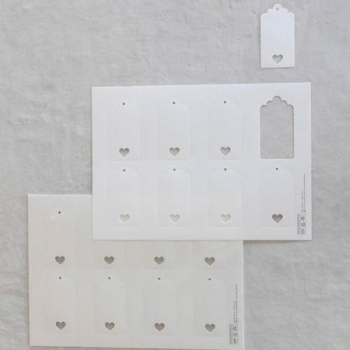 Tag Rettangolare con Cuore e Foro Kartos 4,5×8,5 cm – Prefustellato A4, 200 g, Bianco Martellato, Conf. 48 pz
