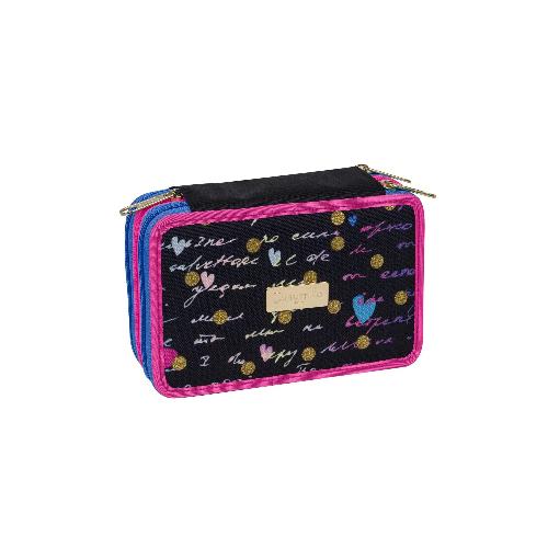 Dreams Flowers Nero è un astuccio attrezzato pratico e capiente