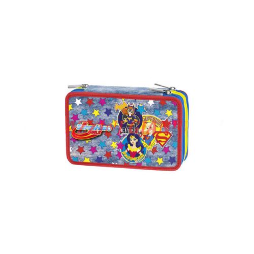 Astuccio 3 Zip DC Super Hero Girls Power - Astuccio scolastico attrezzato completo 45 pezzi per scuola primaria