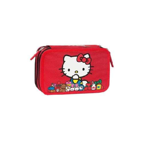 Astuccio 3 Zip Hello Kitty - Astuccio scolastico attrezzato completo con corredo cancelleria per scuola primaria