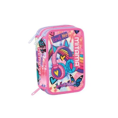 Astuccio 3 Zip Mitama Tie Music - Astuccio scolastico attrezzato completo 47 pezzi per scuola primaria