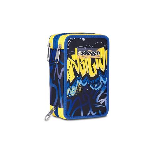 Astuccio 3 Zip QQB Hidden Spot Boy - Astuccio scolastico attrezzato completo 45 pezzi per scuola primaria