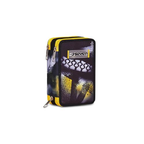 Astuccio 3 Zip Seven QQB Golden Paint - Astuccio scolastico attrezzato completo 45 pezzi per scuola primaria