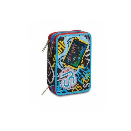 Astuccio 3 Zip Seven QQB SJ Gang Cyber Boy - Astuccio scolastico attrezzato completo 45 pezzi per scuola primaria