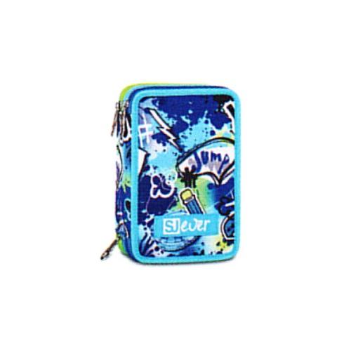 Astuccio 3 Zip Seven QQB SJ Gang Ever Cloudy Blue - Astuccio scolastico attrezzato completo 45 pezzi per scuola primaria