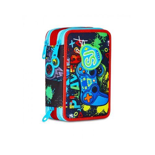 Astuccio 3 Zip Seven QQB SJ Gang Game LED Boy - Astuccio scolastico attrezzato completo 45 pezzi per scuola primaria