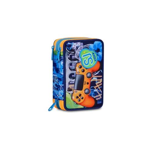 Astuccio 3 Zip Seven QQB SJ Gang Joyful Pins Boy - Astuccio scolastico attrezzato completo 45 pezzi per scuola primaria