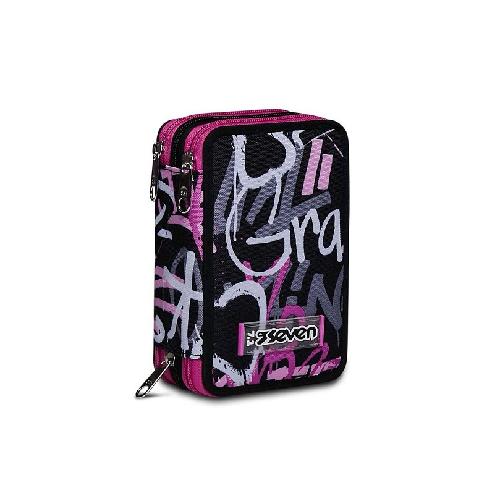 Astuccio 3 Zip Seven SJ Gang Chulky - Astuccio scolastico completo con triplo scomparto e 45 pezzi per scuola primaria e secondaria