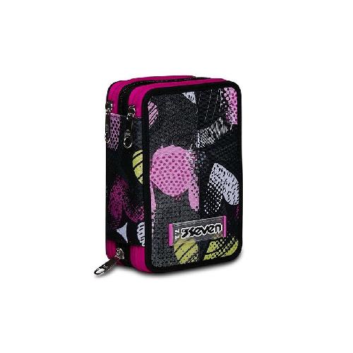 Astuccio 3 Zip Seven SJ Gang Kiddie Crush - Astuccio scolastico completo con 45/46 pezzi, triplo scomparto e chiusura a zip per scuola primaria e secondaria