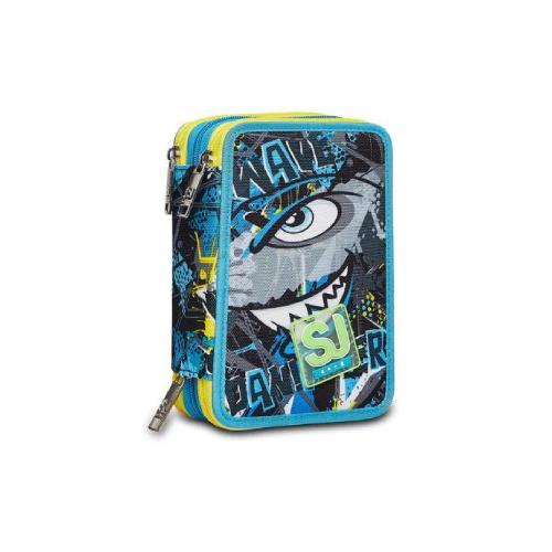 Astuccio 3 Zip Seven SJ Gang Sharken - Astuccio scolastico attrezzato completo 45 pezzi per scuola primaria