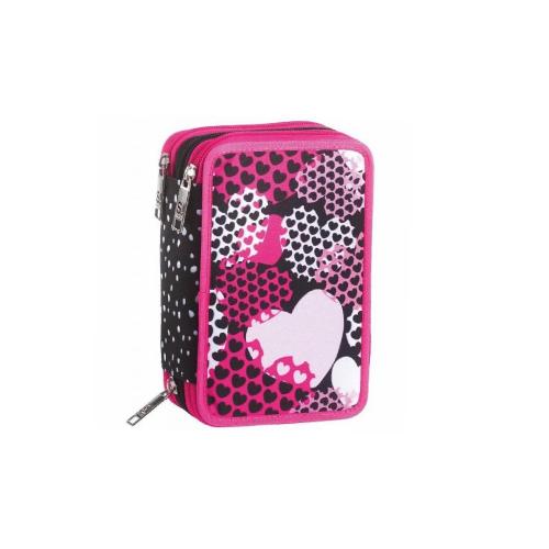 Astuccio 3 Zip SJ Gang Heart Girl Seven - Astuccio scolastico completo con triplo scomparto e 45 pezzi per scuola primaria e secondaria