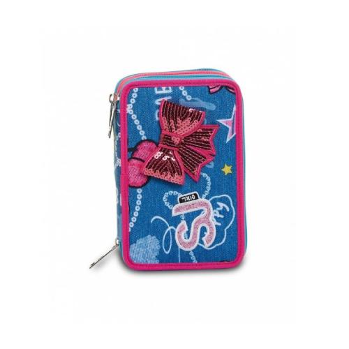 Astuccio 3 Zip SJ Gang Just Denim Girl - Astuccio scolastico completo con triplo scomparto e 45 pezzi inclusi per scuola primaria e secondaria