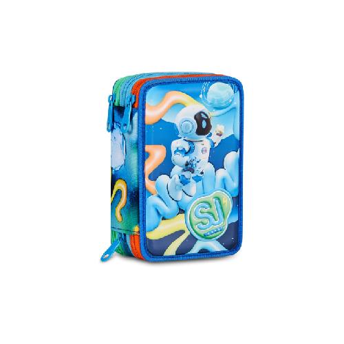 Astuccio 3 Zip SJ Gang Space Ride - Astuccio scolastico completo con triplo scomparto e 45 pezzi inclusi per scuola primaria e secondaria
