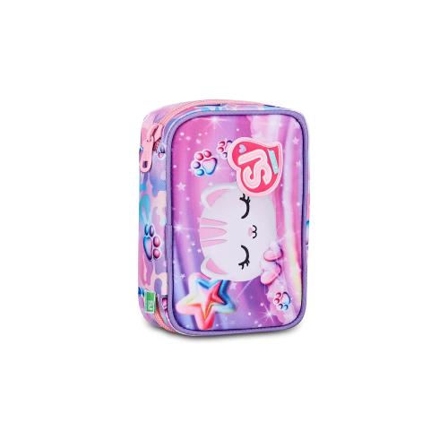 Astuccio Speed Pad SJ Gang Glowcat - Astuccio scolastico completo con 44 pezzi, maxi zip e sistema interno modulare per scuola primaria e secondaria