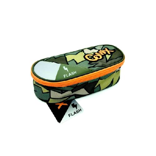Astuccio Ovale Organizzato Comix Flash Broken Camo - Astuccio scolastico compatto con interno attrezzato e chiusura a zip per scuola e uso quotidiano