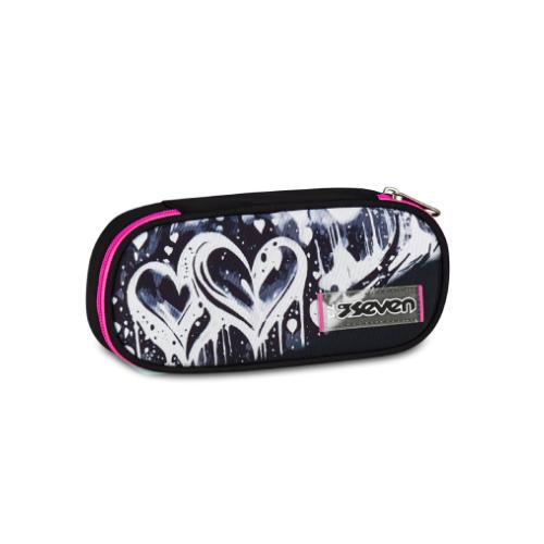 Astuccio Ovale Round Plus Seven Plumpy Line Girl - Astuccio scolastico compatto con interno organizzato e chiusura a zip per scuola e uso quotidiano