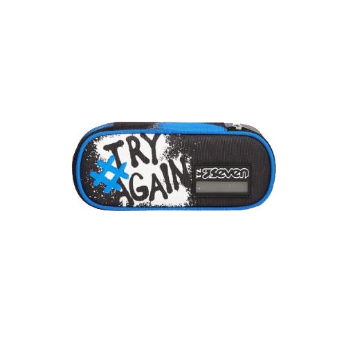 Astuccio Ovale Round Plus Seven Yourself Boy - Astuccio scolastico compatto con interno organizzato e chiusura a zip per scuola e uso quotidiano