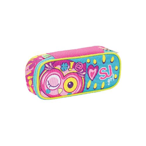 Astuccio Ovale Round Plus SJ Gang Animal Girl - Astuccio scolastico compatto con interno organizzato e chiusura a zip per scuola e uso quotidiano