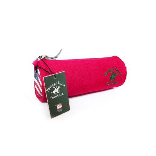 Astuccio Tombolino Polo Club Rosso con Bandiera USA - Portapenne cilindrico compatto con chiusura a zip e design sportivo americano per scuola e tempo libero