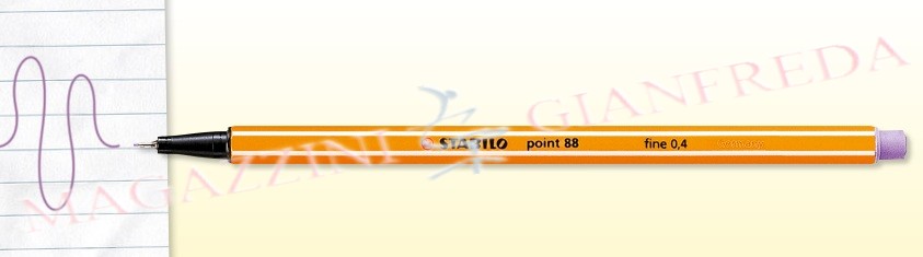 Pennarello Stabilo Point 88 lilla chiaro , pensato per alunni, studenti e professionisti. Il fineliner n° 1 in Europa, con tratto di 0,4 mm. Adatto per lavorare con righelli, squadre e stencil. Utilissimo nello studio per facilitare la memorizzazione dei testi, grazie ai suoi 25 diversi colori + 5 colori fluo . Il suo design unico ha raggiunto da lungo tempo lo status di CULT, ed è sinonimo di affidabilità. La punta rinforzata super-resistente è ideale per lavori di precisione. Inchiostro a base d'acqua. Lunga resistenza senza cappuccio. Cappuccio ventilato anti-soffocamento