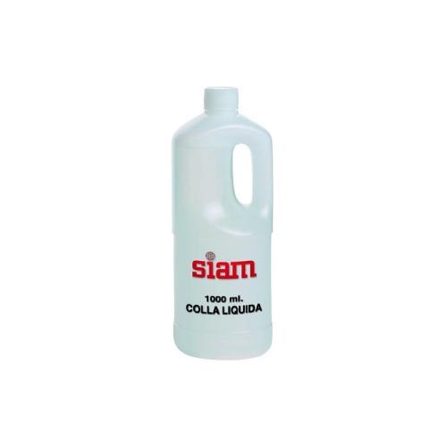Colla liquida Siam, flacone da 1 litro, ideale per incollare carta, cartone, legno leggero e altri materiali nei lavori creativi, scolastici e artigianali. Facile da applicare, asciuga chiara e garantisce una presa stabile e duratura, rendendo ogni progetto ordinato e resistente.