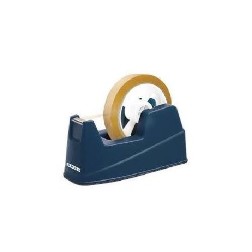 Dispenser porta nastro adesivo da tavolo blu, progettato per nastri adesivi da 19 mm di larghezza e 33 o 66 metri di lunghezza, ideale per ufficio, scuola o attivitą creative. Robusto e stabile, permette di tagliare il nastro in modo preciso e rapido, assicurando applicazioni ordinate e senza sprechi.