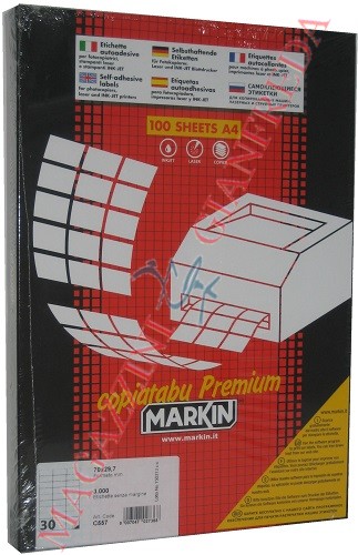 Markin C557. Etichette Markin C557 mm 70X29,7 100 fogli da 30 etichette autoadesive permanenti. Barcode : 8007047027368