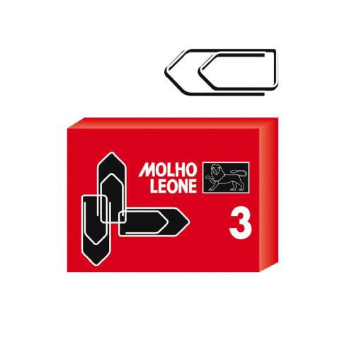 Confezione da 100 graffette fermagli zincati Molho Leone N. 3, ideali per fissare fogli e documenti in ufficio, a scuola o a casa. Realizzate in metallo zincato resistente, offrono una presa stabile e duratura, mantenendo i materiali cartacei ordinati senza rischi di danneggiamento.