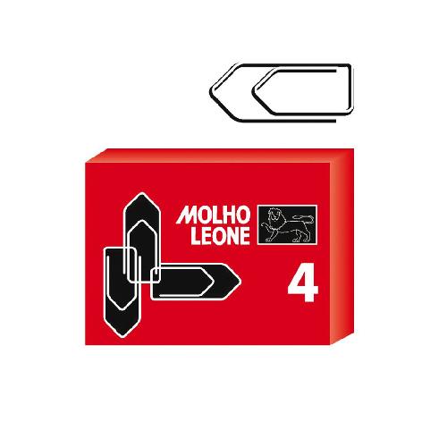 Confezione da 100 graffette fermagli zincati Molho Leone N. 4, ideali per fissare fogli e documenti in ufficio, a scuola o a casa. Realizzate in metallo zincato resistente, garantiscono una presa stabile e duratura, mantenendo i materiali cartacei ordinati senza rischi di danneggiamento.