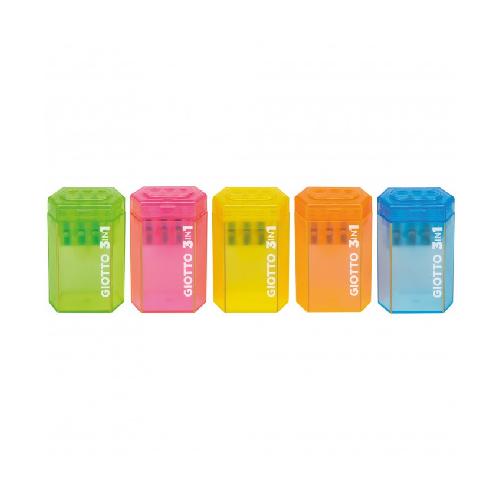 Il temperamatite Giotto 3 in 1 con serbatoio è un accessorio versatile e pratico, ideale per temperare matite di diverse dimensioni con facilità e precisione. Dotato di serbatoio raccogli-trucioli, consente di mantenere pulito lo spazio di lavoro, riducendo gli sprechi e semplificando l’uso a scuola, in ufficio o a casa. La struttura resistente e compatta lo rende comodo da maneggiare e perfetto anche per i bambini. Disponibile in colori assortiti, questo temperamatite 3 in 1 è adatto a tutte le matite standard e rappresenta uno strumento utile per studenti, creativi e hobbisti. L’ergonomia e la praticità del serbatoio integrato garantiscono un’esperienza di utilizzo semplice, veloce e sicura, rendendolo un accessorio indispensabile per chi desidera precisione e ordine nelle attività di scrittura e disegno.