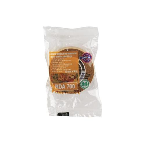 Nastro biadesivo Euro 700 RDA, 15 mm x 10 m, ideale per fissaggi permanenti o temporanei su carta, cartone, plastica e altri materiali leggeri. Grazie alladesivo su entrambe le superfici, permette unadesione rapida e stabile senza necessitą di chiodi o graffette, rendendo ogni progetto ordinato e preciso.